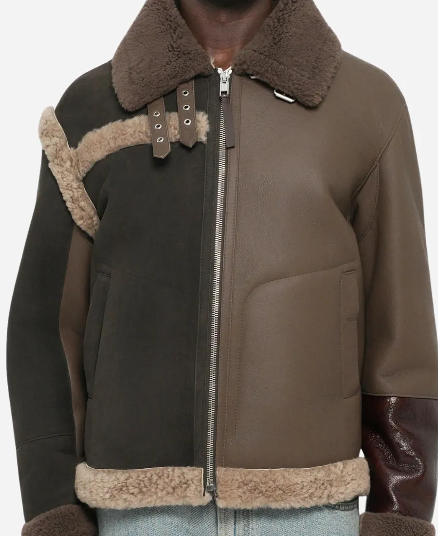 Men’s Moschino Shearling-Trimmed Brown Leather Jacket