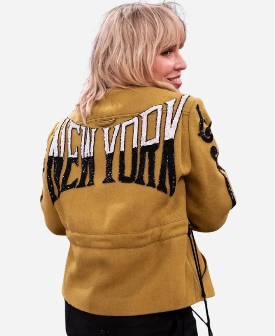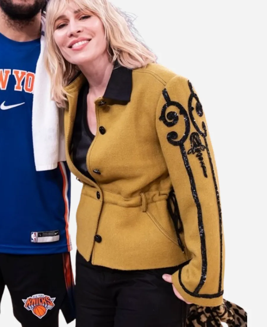 New York Knicks NBA Game 2026 Natasha Bedingfield New York Sequined Yellow Wool Jacket