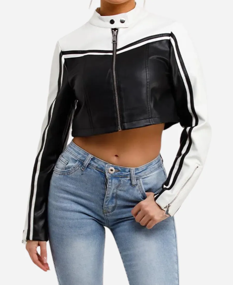 2026 NBA All Star Celebrity Game Jenna Bandy Cropped Two Tone Leather Jacket