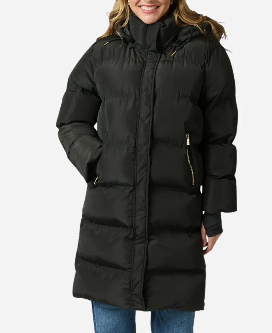Purchase this Neo Noir Lucette Black and Green Long Puffer Jacket now from here at an affordable sale price.
