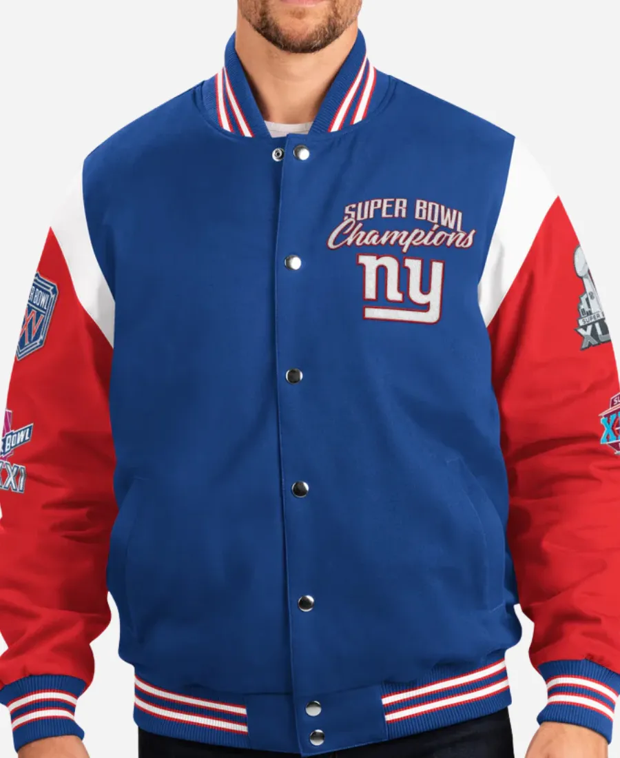 New York Giants 4X Super Bowl Blue & Red Varsity Jacket