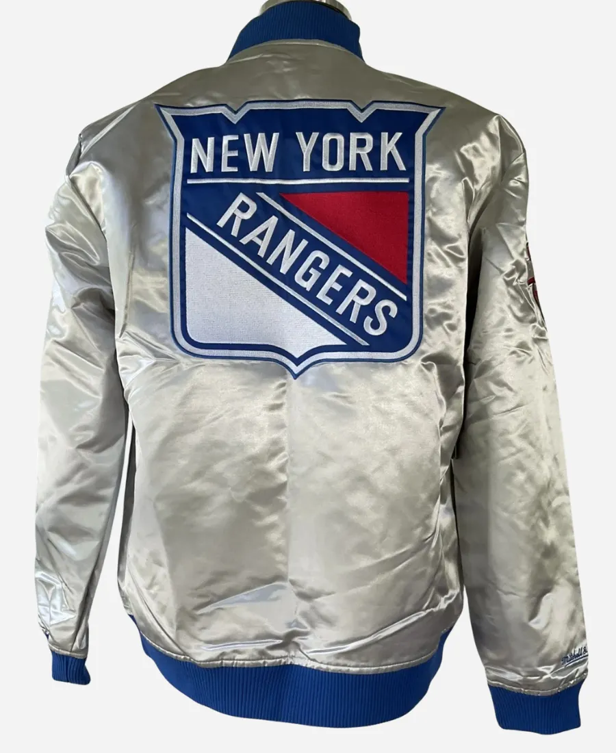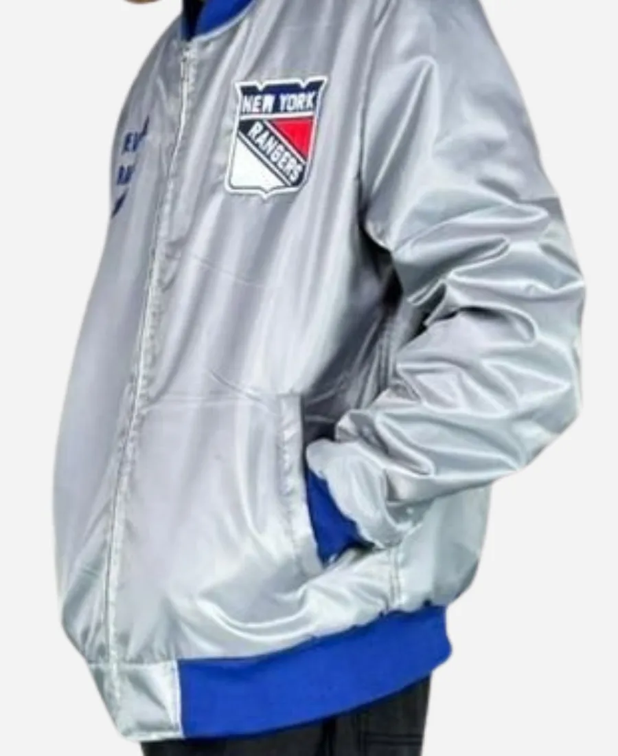 New York Rangers Team OG 2.0 Silver Satin Varsity Jacket