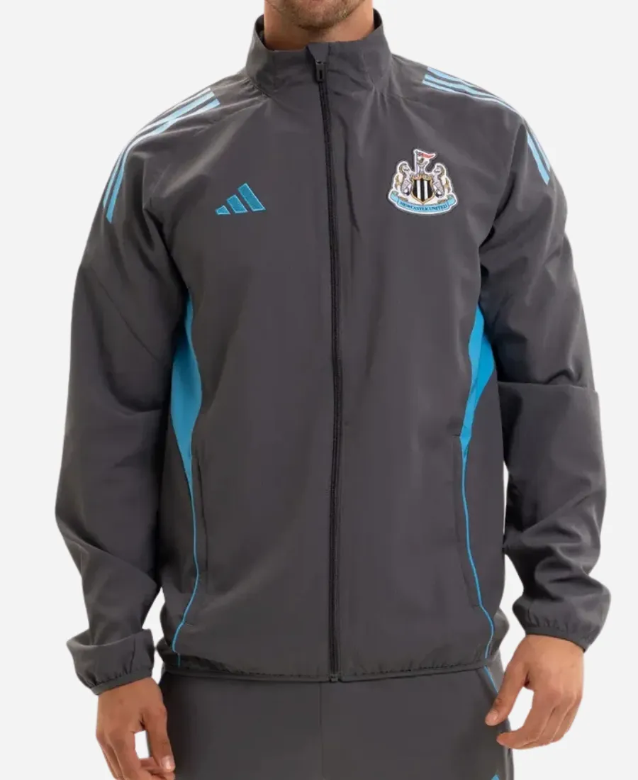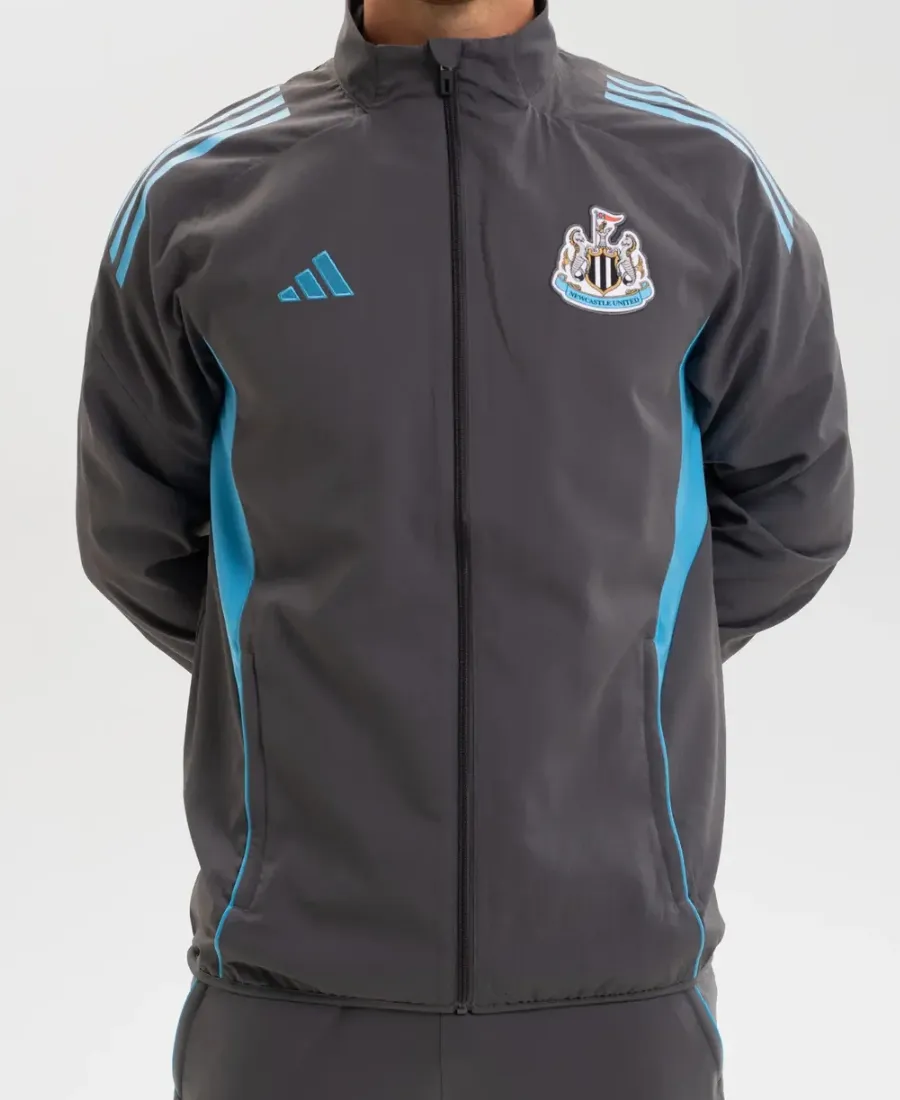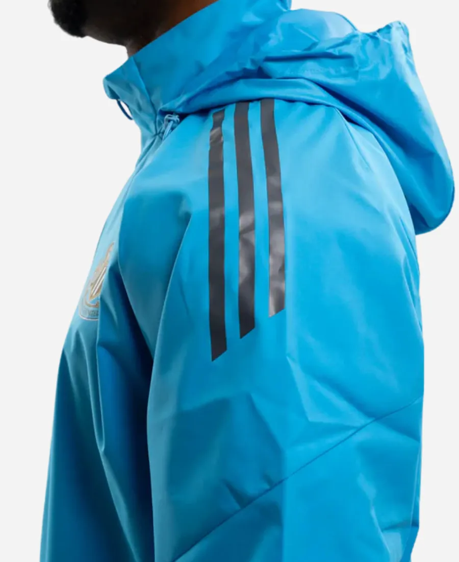 Men’s Newcastle United Adidas 2025/26 Players Range All Weather Blue And Grey Hooded Jacket