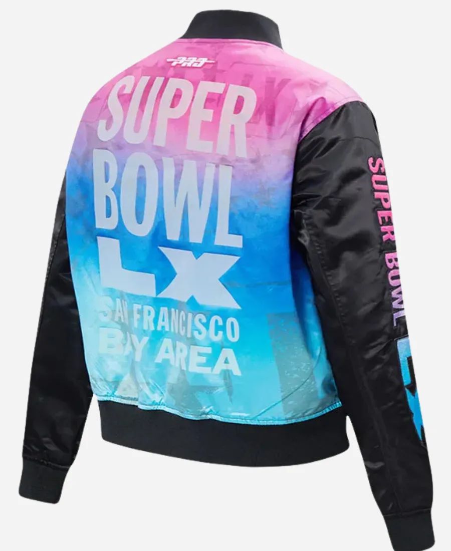 2026 San Francisco Bay Area NFL Super Bowl LX Black Satin Varsity Jacket
