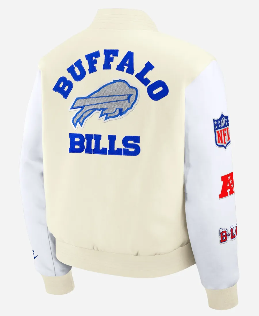 Men’s Nike Buffalo Bills 2025 Rivalries Collection Full-Snap White Varsity Jacket