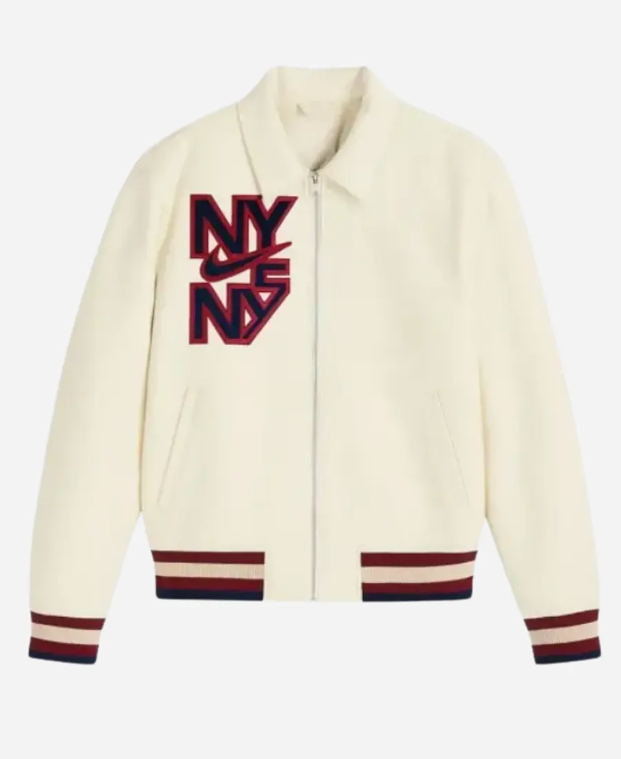 Nike Logo ‘NY’ Patch Off-White Bomber Jacket