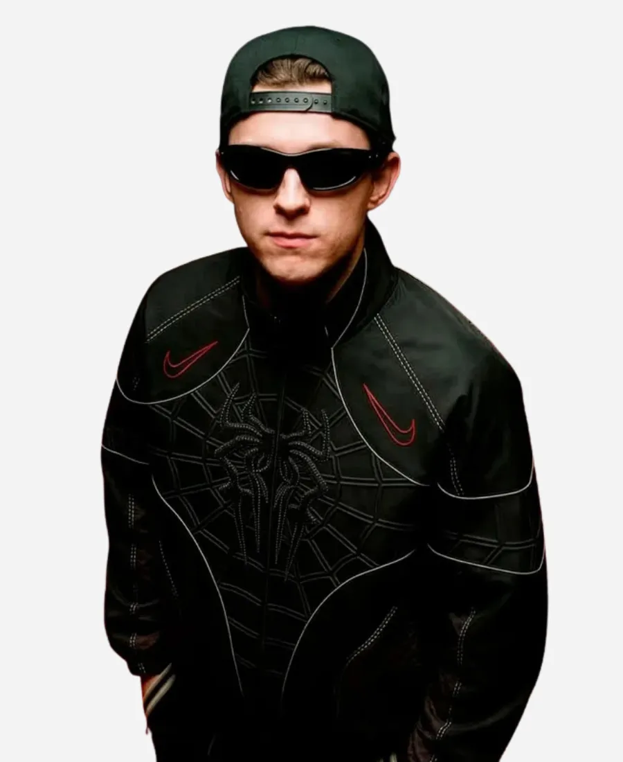 In search of a jacket that helps you own every room you enter without trying too hard? Take a slide into this alluring Spider-Man Tom Holland Track Jacket. An exquisite black track jacket that fuses cinematic heroism with cutting-edge streetwear design. Moreover, this jacket is a piece of merchandise inspired by the upcoming Marvel film Spider-Man: Brand New Day (2026). Not only does it keep you comfortable, but it will also deliver a sleek blend of agility and style, making it the best pick. It is a fashionable track jacket, often listed as part of a collaboration featuring NOCTA (Drake’s Nike sub-label) styling, inspired by Tom Holland’s character. On the other hand, this intriguing black track jacket is now available at the Jacket Era as an excellent imitation. So, make it yours to stylishly and comfortably channel the essence of Spider-Man’s next chapter.