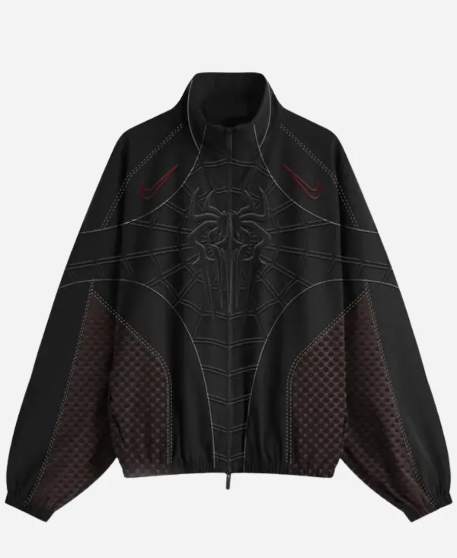Merging performance aesthetics with iconic Marvel storytelling, this Spider-Man x NOCTA Tom Holland Track Jacket is a must-have. It is a must, as it transforms athletic wear into a statement of superhero-inspired sophistication. Furthermore, this gorgeous black track jacket is now available here in our latest collection in different sizes for everyone. The professional artisans of the Jacket Era craft this black beauty from top-notch cotton-poly material with high-quality details. It comes with elastic cuffs and a hem, long sleeves, and a durable zipper front for ease of wear. However, to enhance its aesthetic charm, a large, tonal spider and its web embroidery play an important role. The stand-up-style collar adds a sleek touch to its overall appearance without a doubt. Thus, grab it now to bring the excitement of Spider-Man’s new beginning straight to your closet.