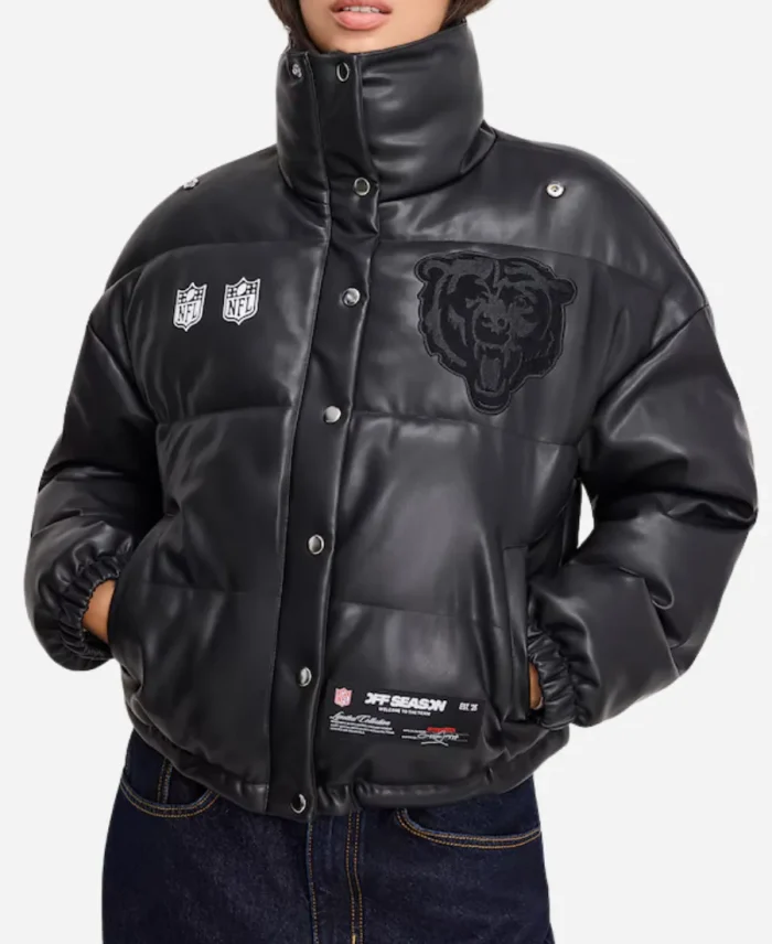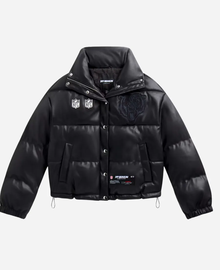 Off Season Chicago Bears Black Faux Leather Puffer Jacket