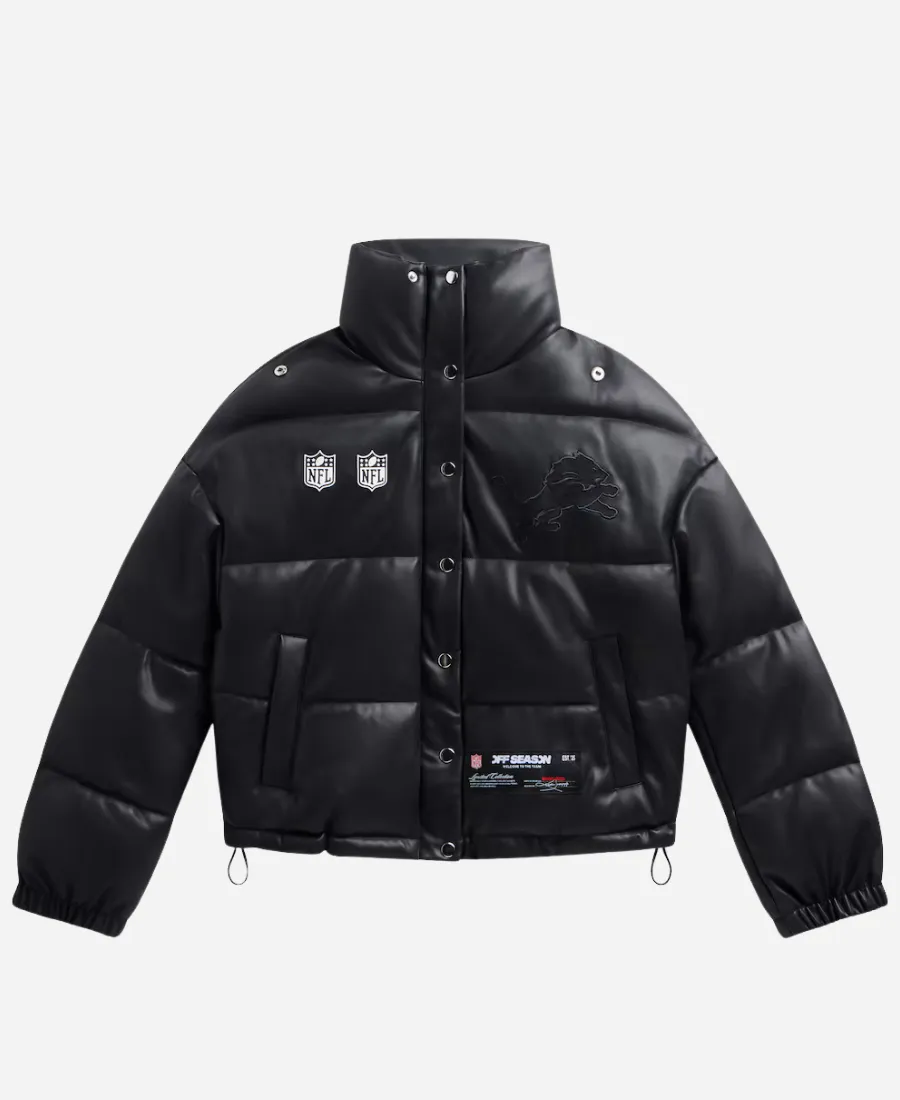 Off Season Detroit Lions Black Faux Leather Puffer Jacket