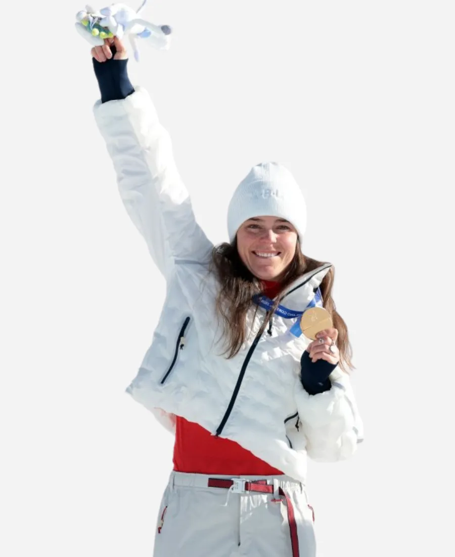 Want to capture the Team USA spirit at the 2026 Winter Olympics elegantly without trying too hard? Are you a fan of the beautiful American Olympian, Breezy Johnson? Take a slide into this alluring Olympics 2026 Breezy Johnson Jacket. Not only for the fans of Breezy Johnson. But this sassy jacket is also an ideal buy for those who want to showcase their love for American heritage. Moreover, this iconic white masterpiece comes from a premium brand, ACG (All Conditions Gear), the sub-label of Nike. Our favorite Breezy Johnson wears this white ACG Team USA jacket in the Milano Cortina 2026 Winter Olympics. She was also spotted in this jacket while receiving her Olympic gold medal in downhill. On the other hand, this white outerwear is now available at the Jacket Era as an excellent imitation. So, grab it now to flow with contemporary style and never-ending confidence.