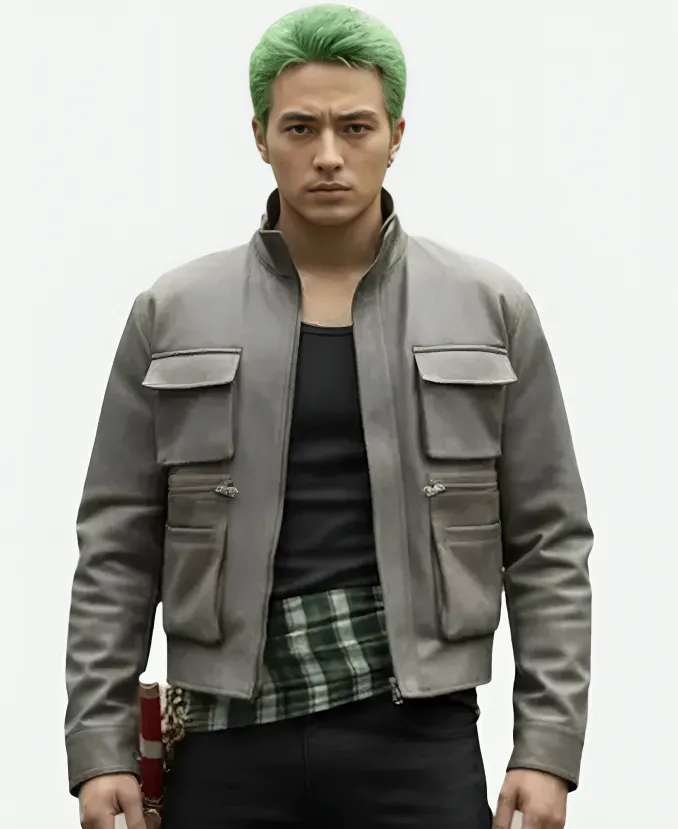 Mackenyu One Piece S02 Roronoa Zoro Grey Leather Jacket