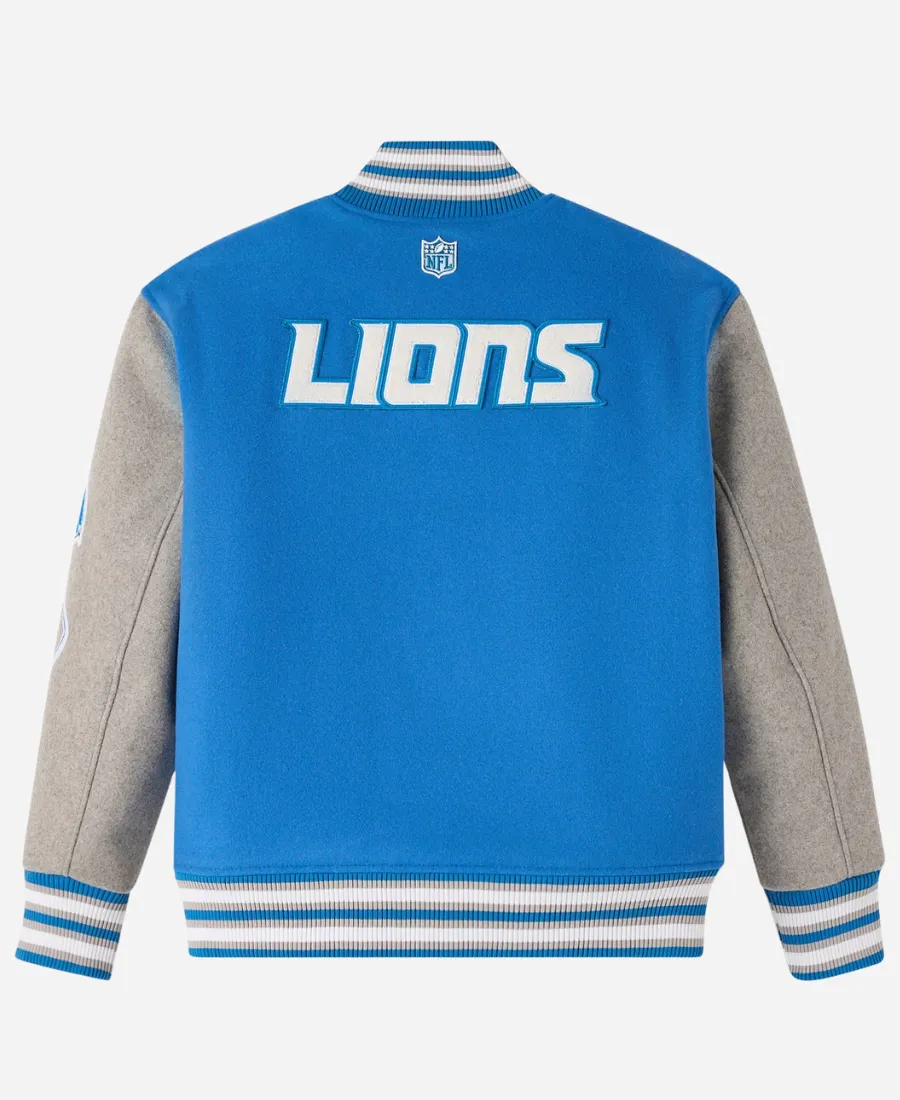 Purchase this 2025 OVO Detroit Lions Blue Varsity Jacket now from here at an exciting sale price.