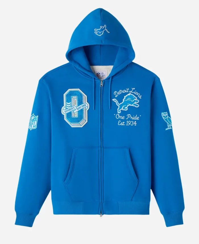 Introducing you to the gorgeous OVO Detroit Lions Waffle-Lined Hoodie—where high-end fashion meets modern football culture. This exquisite blue hoodie is not your normal hoodie. But it is the one that combines the Lions’ athletic spirit with a contemporary streetwear attitude. For die-hards of the American football team, the Detroit Lions, the Jacket Era is here with this trendy waffle-lined blue hoodie. Moreover, it enhances your sports fashion game and helps you score engaging compliments. It comes from an iconic 2025 collaboration between the Canadian fashion brand OVO and the NFL. On the other hand, this classy waffle-lined 2025 blue hoodie is available here in our latest collection as a flawless imitation. Thus, try this enchanting blue hoodie right now and feel the heat of the Lions in OVO’s style.