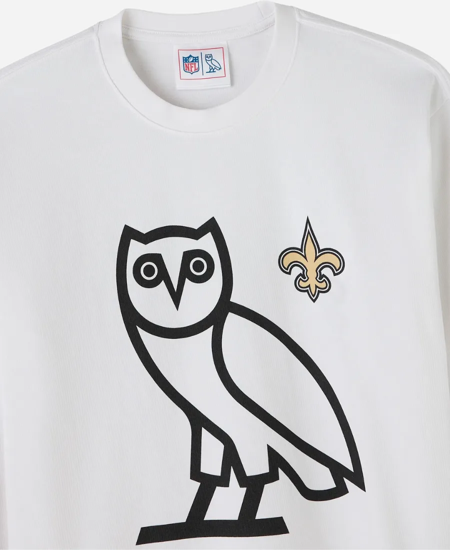 2025 October’s Very Own OVO x NFL New Orleans Saints White Long-Sleeve T-Shirt