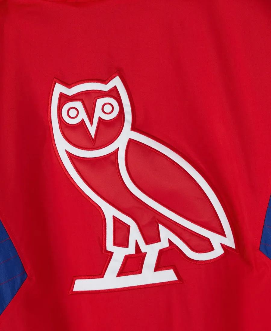 This 2025 OVO Bills Starter Jacket is the perfect addition for your fan’s wardrobe. It is what brings modern heat in OVO’s style with Bill’s pride straight to your wardrobe without any doubt. Furthermore, this sassy masterpiece is available at Jacket Era in pure polyester fabric in red in different sizes. The professionals of our fashion house create this red pullover jacket with high-quality stitching. It comes with long sleeves and a butter-soft quilted inner lining for endless comfort. The rich elastic cuffs and hem of this pullover provide you with a chic fit. It offers a half-zipper front to make it easy to wear and an adjustable hood for some extra comfort. However, the embroidery on the front pocket flap and hood, including a twill patch on both sleeves, adds more to its allure without any doubt.