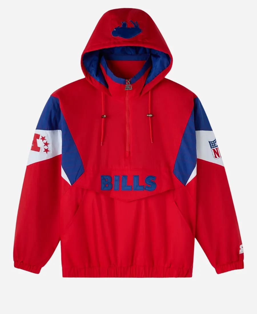 For the fans of the Bills, the Jacket Era is here with a trendy masterpiece. It is what helps you show off your team love stylishly and comfortably without trying hard. Introducing you to the famous OVO Buffalo Bills Starter Pullover Jacket—where high-end fashion meets luxury comfort. Moreover, this gorgeous red pullover jacket is not an ordinary jacket. But it’s a jacket that combines modern American football culture with streetwear flair in one standout piece. This classy red jacket comes from the collaboration between OVO and Starter for the NFL’s 2025 collection. On the other hand, this 2025 collaborative red piece is now here in our latest collection as a flawless imitation. Thus, to exhibit your fondness for your favorite NFL team, the Bills, this red pullover jacket is the best pick.