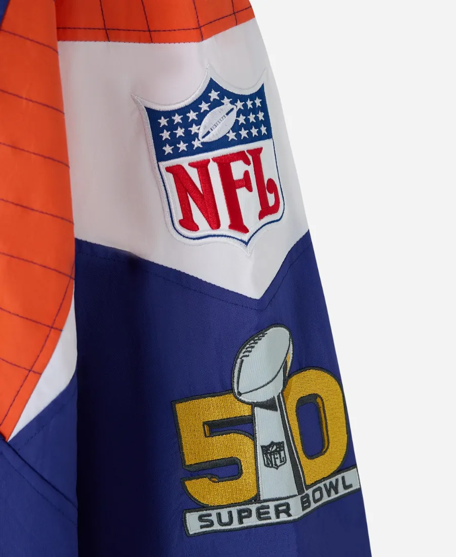 Not your normal jacket. But this collaborative navy blue pullover will boost your sports fashion game straight to new heights. Introducing you to the gorgeous and famous OVO Denver Broncos Starter Pullover Jacket—where top-notch fashion meets premium craftsmanship. This alluring navy blue pullover jacket is the best addition to stylishly showcase your fondness for the Broncos. Furthermore, it is what comes from the collaboration between the two different powerhouses, OVO and Starter, for the 2025 NFL collection. On the other hand, it is available here at Jacket Era as a flawless imitation, especially for Broncos fans. It is what combines American football culture with contemporary sports fashion in one standout piece. So, make it yours and set a new trend in your friends’ circle, showcasing your Broncos pride.