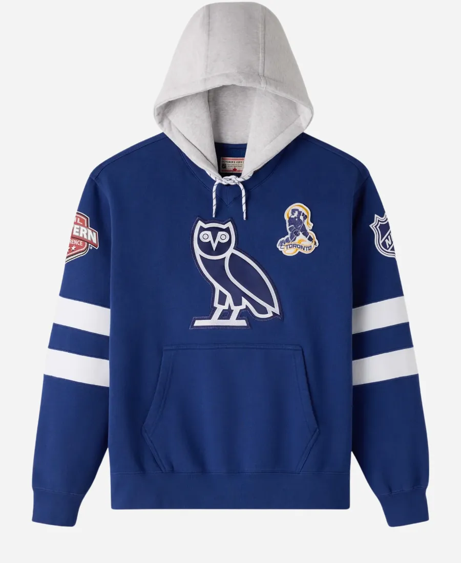 Want to add the rich tradition of the Leafs and the luxury of OVO’s streetwear to your daily wear? Are you one of those who love to represent the Toronto Maple Leafs stylishly? Take a slide into the famous and fascinating OVO Toronto Maple Leafs Hoodie. A true creation for a true fan to proudly wear the team with OVO’s classiness. Furthermore, this blue pullover hoodie is a collaborative creation. It comes from the collaboration between Drake’s lifestyle brand OVO and the NHL for the Toronto Maple Leafs. This hoodie is the perfect way to show your team spirit and elevate your style game. On the other hand, it blends Toronto’s hockey history with cutting-edge streetwear in one piece to make it the best investment. So, grab it now and become a showstopper everywhere you go while embracing OVO’s luxury aesthetic.