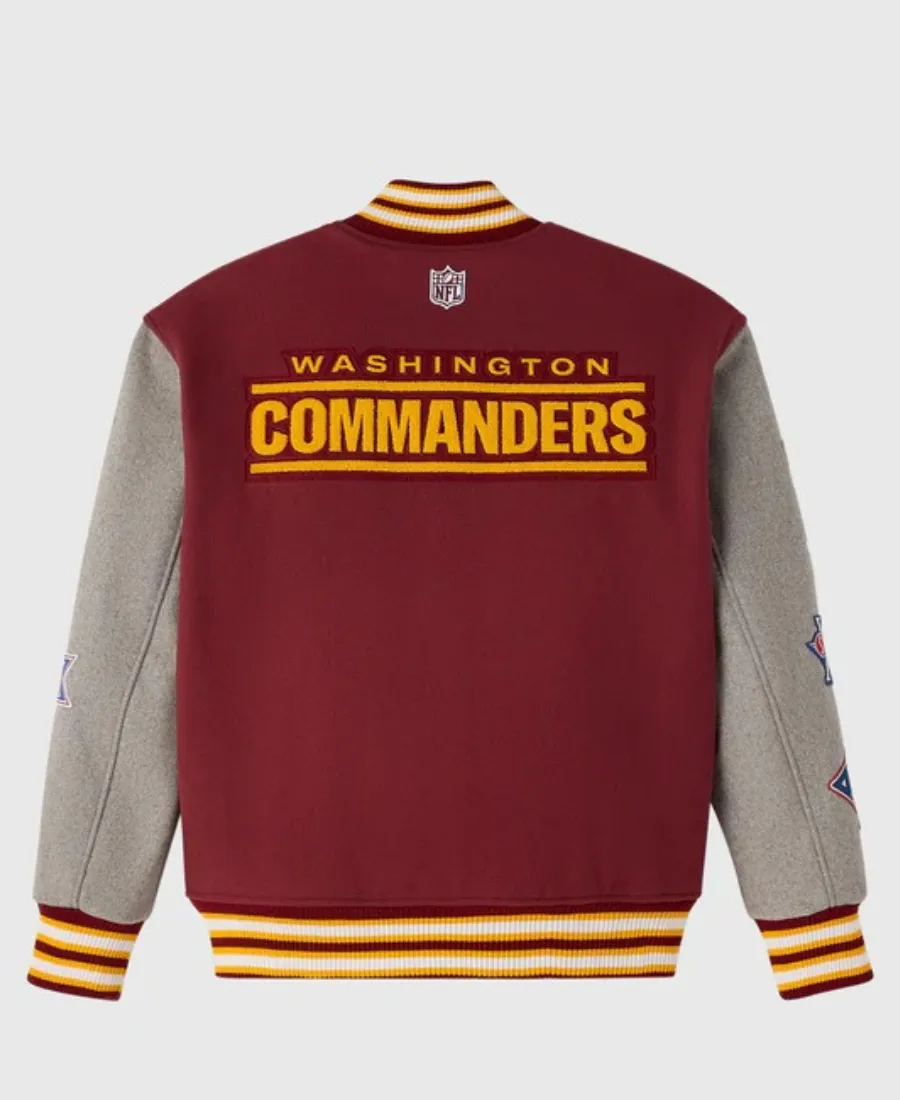 For the fans of the Washington Commanders, the Jacket Era is here with a trendy varsity jacket. Yes, to help you steal the spotlight with team pride, we’re here with a gorgeous jacket—where top-notch sports fashion meets premium comfort. Introducing you to the captivating and famous OVO Washington Commanders Varsity Jacket. A true burgundy creation for true fans who live and breathe Commanders football. Moreover, it comes from an iconic 2025 collaboration between OVO and the NFL for the Washington Commanders. On the other hand, this burgundy varsity jacket is available at Jacket Era as a flawless imitation. It is not an ordinary varsity jacket. But this burgundy one is what blends American football culture with high-end OVO style. So, don’t waste time; grab it now and set a new trend.