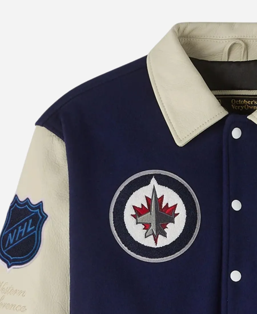 October’s Very Own OVO x NHL Winnipeg Jets Navy Blue Varsity Jacket
