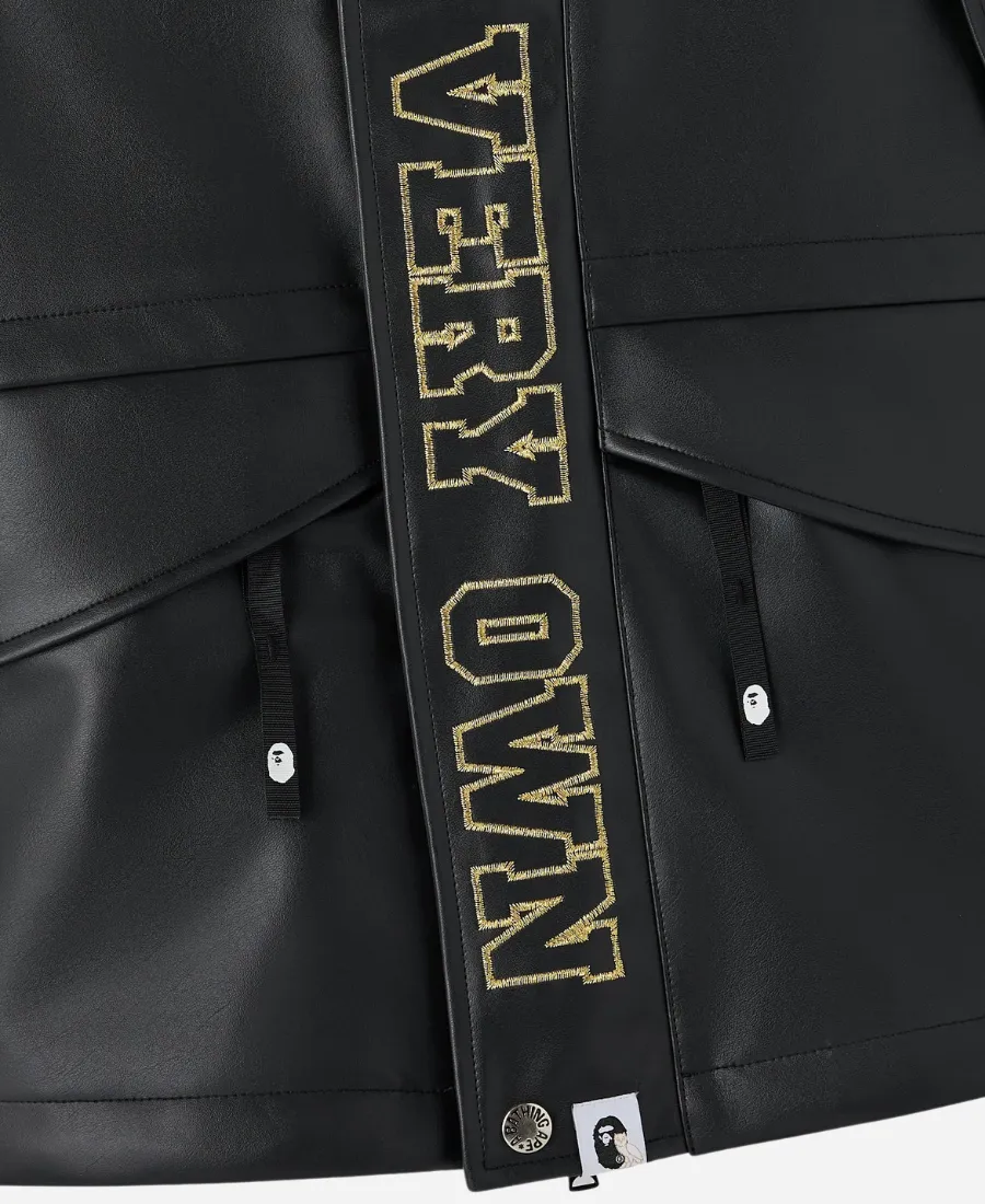 October’s Very Own OVO x Bape Snowboard Black Faux Leather Jacket