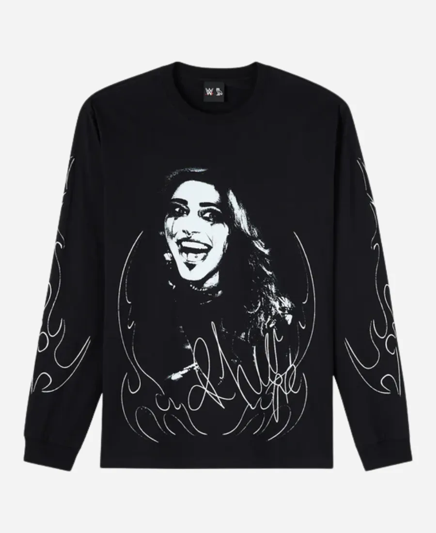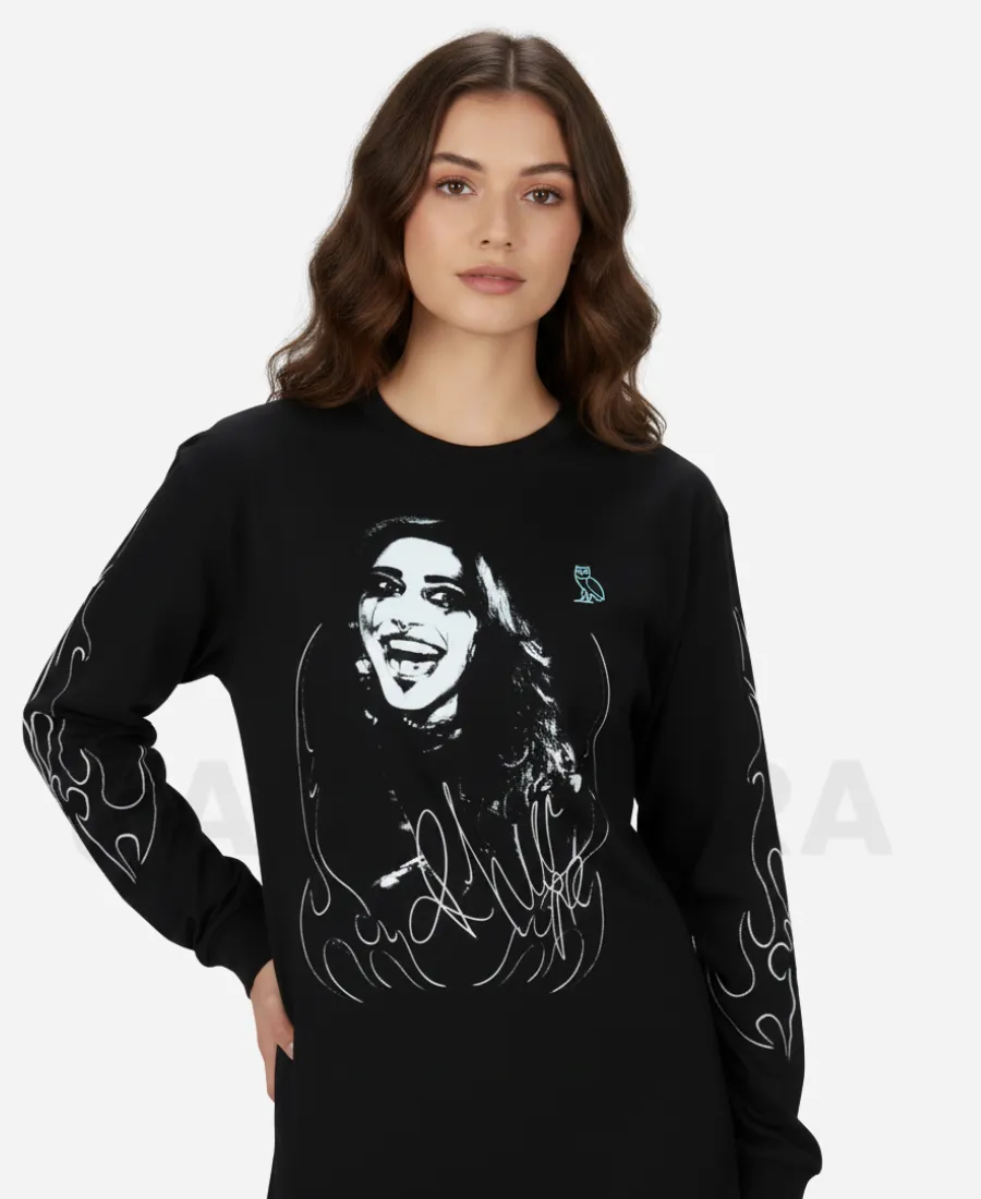 From the ring to the streets, the OVO x WWE Rhea Ripley Long-Sleeve T-Shirt redefines fan apparel with elevated street style. Not only does it redefine fan apparel, but it is also what captures Rhea Ripley’s powerful persona. Moreover, this dazzling black piece of clothing comes from an iconic partnership between two different legends. It originates from an official April 2026 collaboration between OVO (Drake’s clothing brand) and WWE. This tee is not an ordinary creation. But it is the one that blends edgy design with premium comfort for a standout streetwear essential. On the other hand, it is now available at the Jacket Era as an excellent imitation for everyone. So, if you want to channel Australian professional wrestler Rhea Ripley’s modern attitude with style, this tee is a must-have.