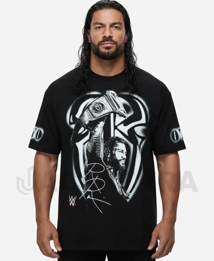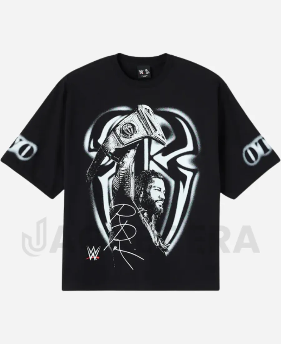 Turning everyday wear into a statement of dominance, this OVO x WWE Roman Reigns T-Shirt is a must-have. Are you a fan of the handsome and popular American professional wrestler and actor Roman Reigns? Want to channel his contemporary, energetic attitude without wearing anything flashy or heavy? Then give this sassy black tee a try right now. This exquisite black t-shirt is not an ordinary creation. But it is the one released as part of a collaborative capsule collection between Drake’s OVO lifestyle brand and World Wrestling Entertainment (WWE) in late April 2026. Furthermore, this collaborative black t-shirt is now available at the Jacket Era as a flawless imitation. On the other hand, this tee is what brings “Tribal Chief” vibes into modern fashion. So, make it yours to wear your favorite Roman Reigns with style and pride.