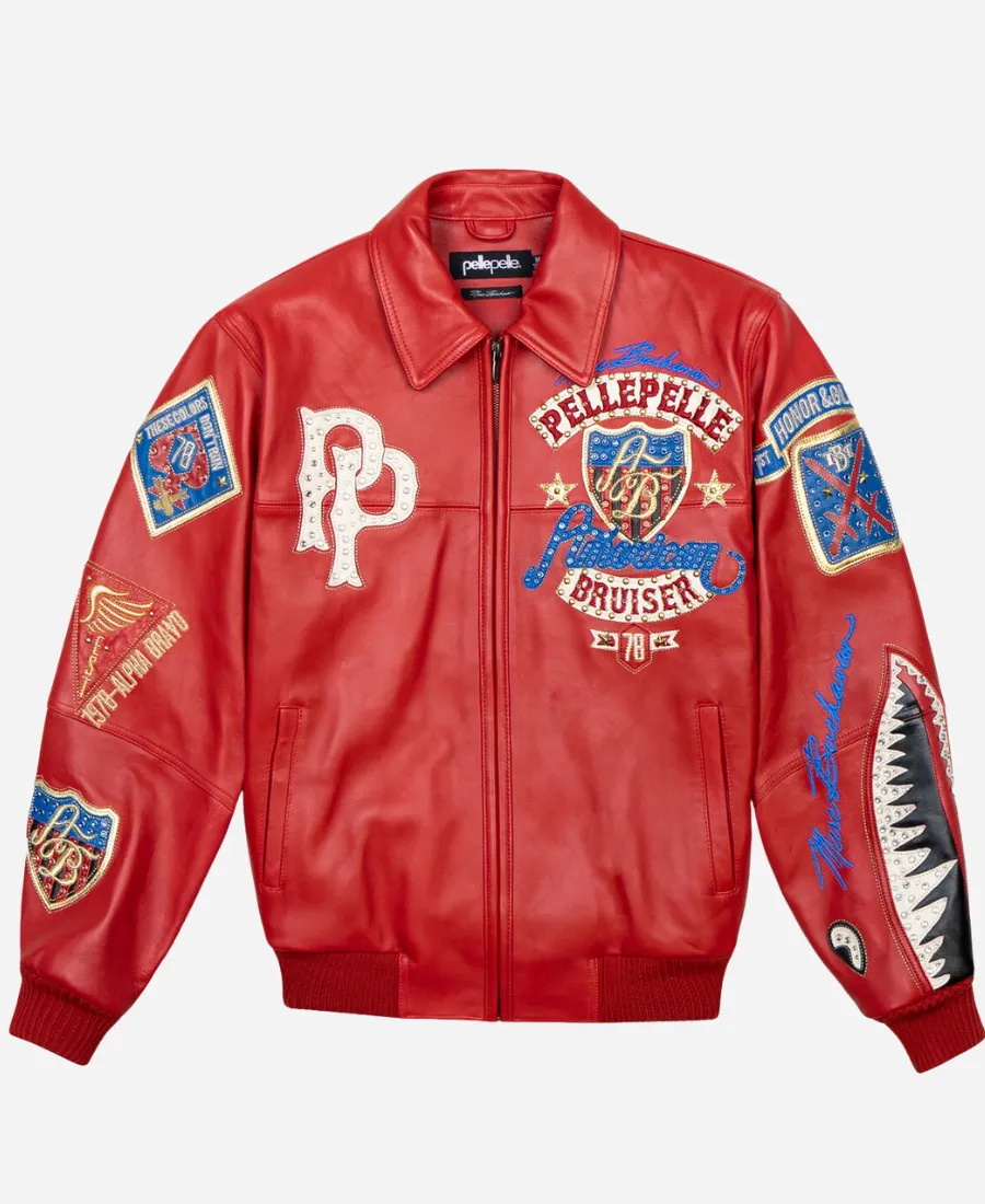 Pelle Pelle American Bruiser World Famous Soda Club Leather Jacket – Black, Red & White