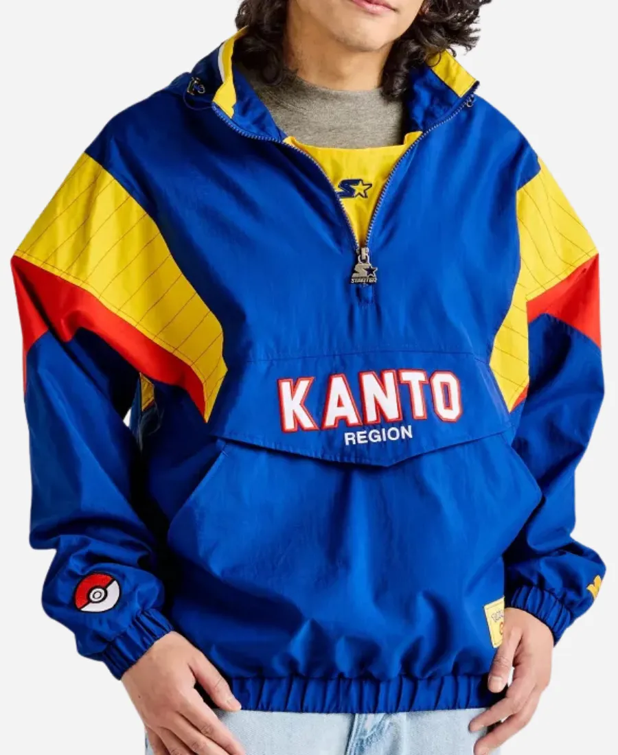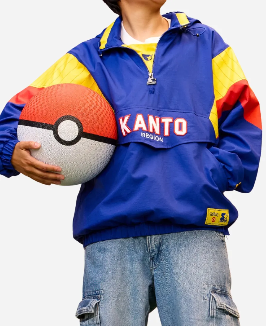 Looking for a jacket to celebrate three decades of nostalgia with a bold and playful design rooted in the beloved Kanto region? Take a slide into this alluring and trendy Pokémon x Target Kanto Starter Jacket. A beautiful jacket that captures the spirit of adventure and nostalgia, bringing iconic starter energy into modern streetwear. Moreover, this dazzling blue pullover anorak jacket is not an ordinary piece of clothing. But it’s a part of an iconic collaboration between three legends, Starter, Target, and Pokémon. This exquisite Kanto Starter Jacket was launched in April 2026 to celebrate Pokémon’s 30th anniversary. On the other hand, this eye-catching blue starter pullover anorak jacket is available at the Jacket Era as an excellent imitation. So, if you want to transform nostalgia into wearable style, just grab this jacket now and be the trendsetter.