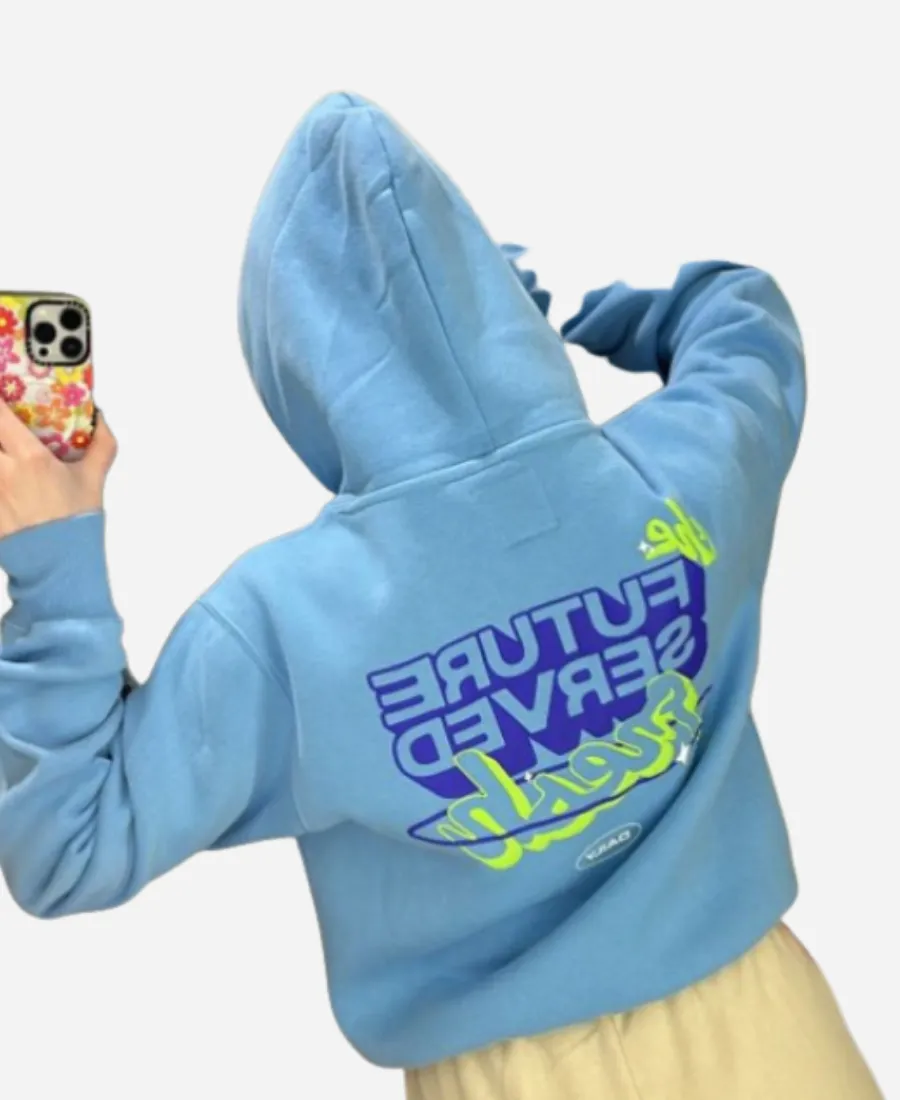 Poppi Blue And Beige Pullover Hoodie – For Sale