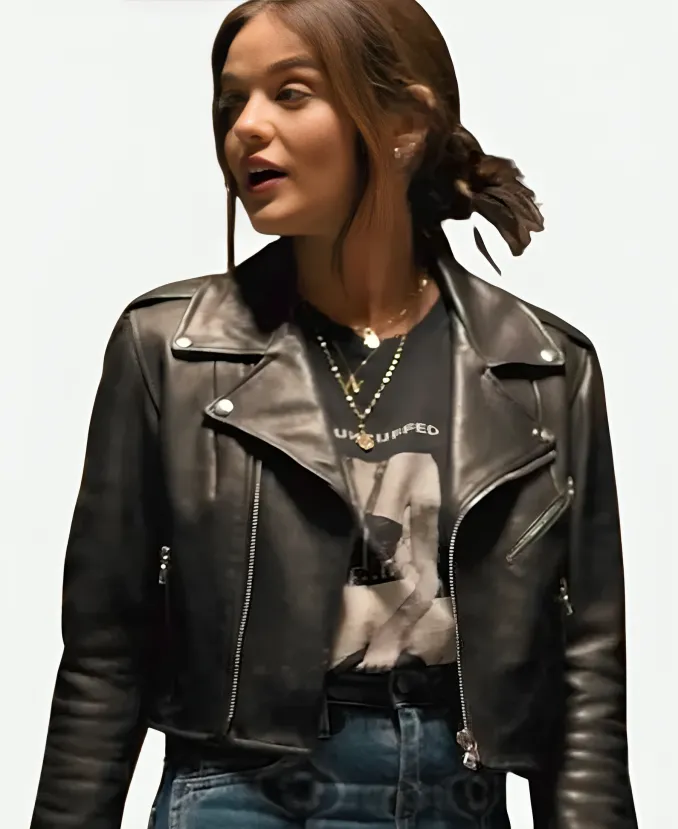 Lucy Hale Puppy Love Nicole Matthew Black Biker Leather Jacket
