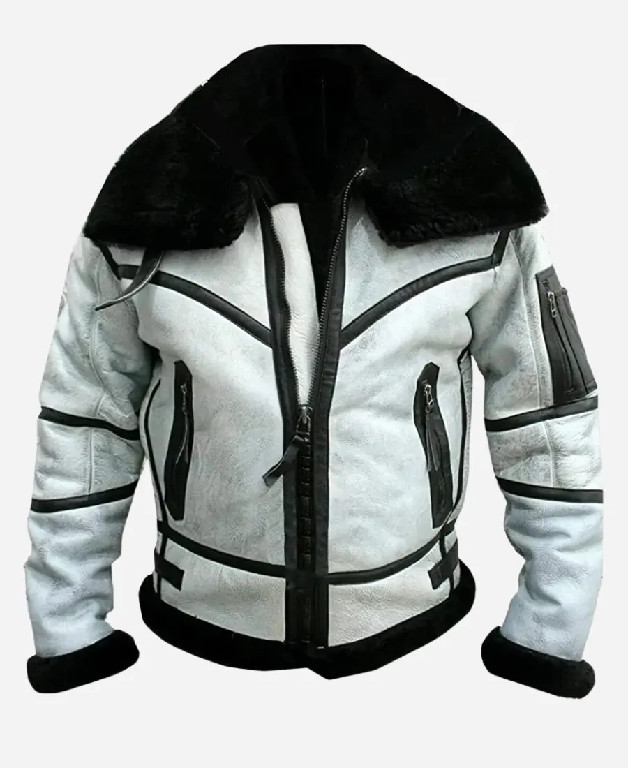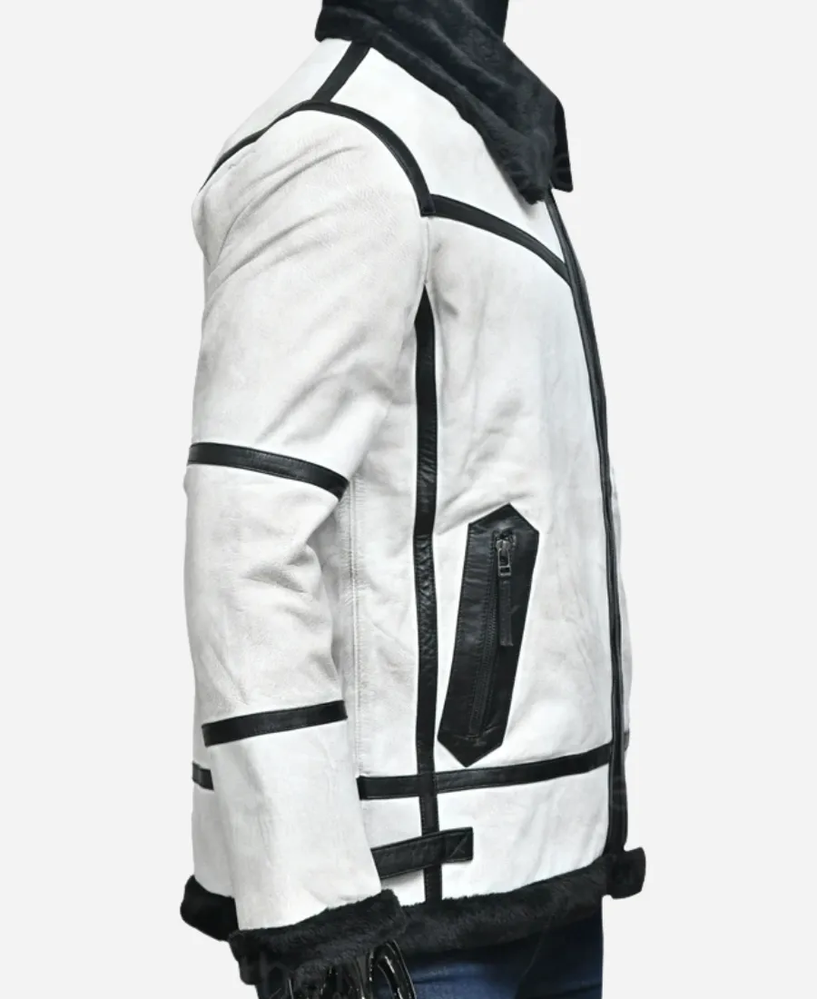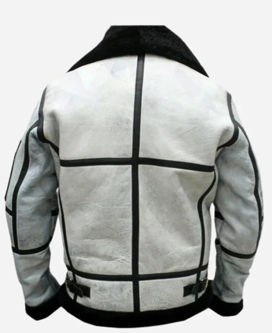 Men’s RAF B3 Flight Aviator White Leather Bomber Jacket