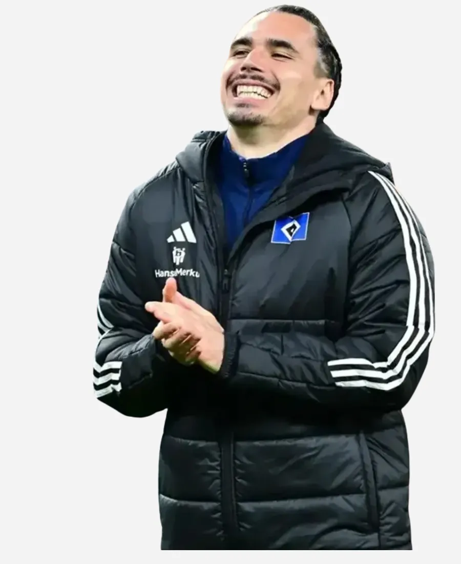 The Rayan Philippe Adidas x Hamburger SV Bundesliga Jacket is a collaborative creation. It is a result of the collaboration between the sportswear brand Adidas and the German sports club Hamburger SV. However, it is now available here at Jacket Era as an imitation in pure polyester fabric. It comes with long sleeves and top-notch elastic cuffs for a chic fit and sleek look. Minimalist in color, maximum in impact, this unisex puffer redefines sporty outerwear with Bundesliga energy. Furthermore, it offers a durable zipper front and a hooded collar. The high-quality logos, puff style, and Adidas signature stripes add more appeal to its aesthetics. This is what keeps you always up with the trend comfortably and stylishly. So, add it right now to your collection to stay sharp and warm without trying hard.