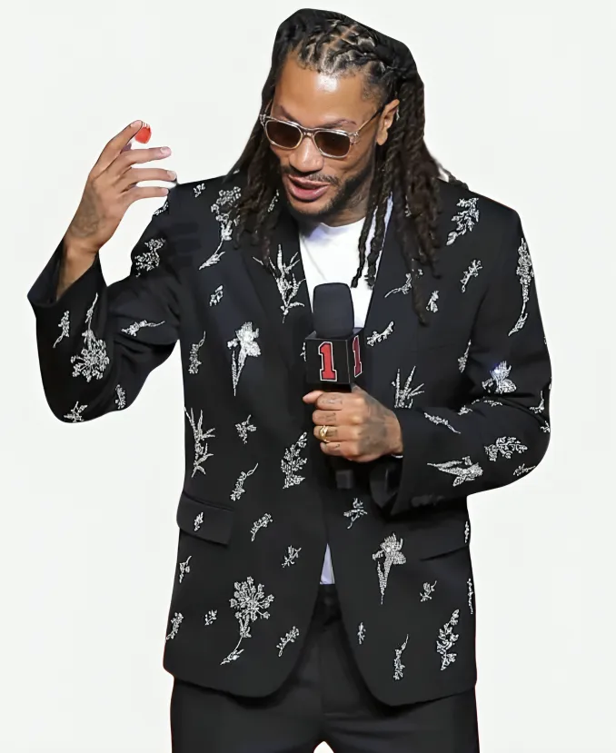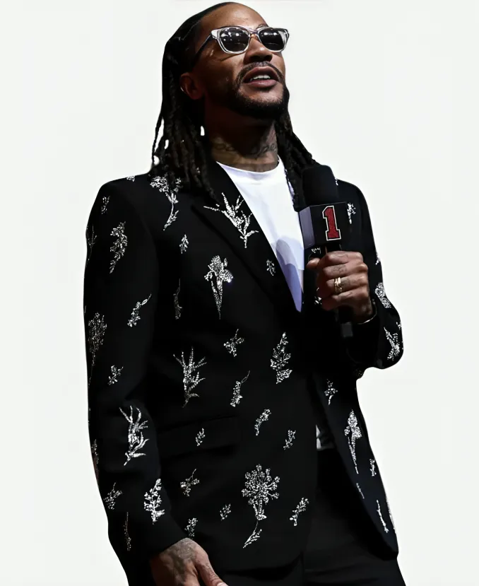 Retirement Ceremony 2026 Derrick Rose Black Embroidered Blazer