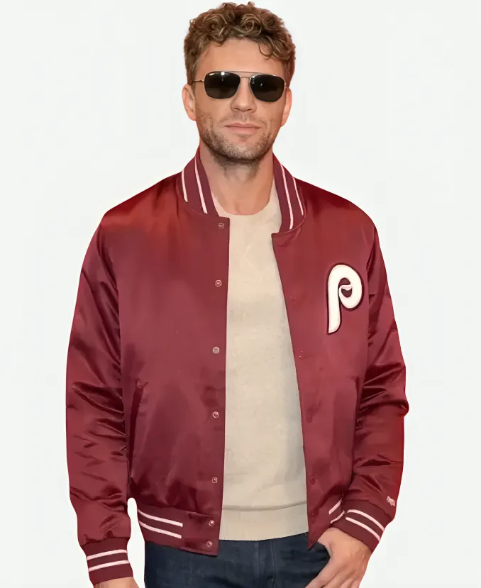 Ryan Phillippe 2026 Philadelphia Phillies Burgundy Varsity Bomber Jacket