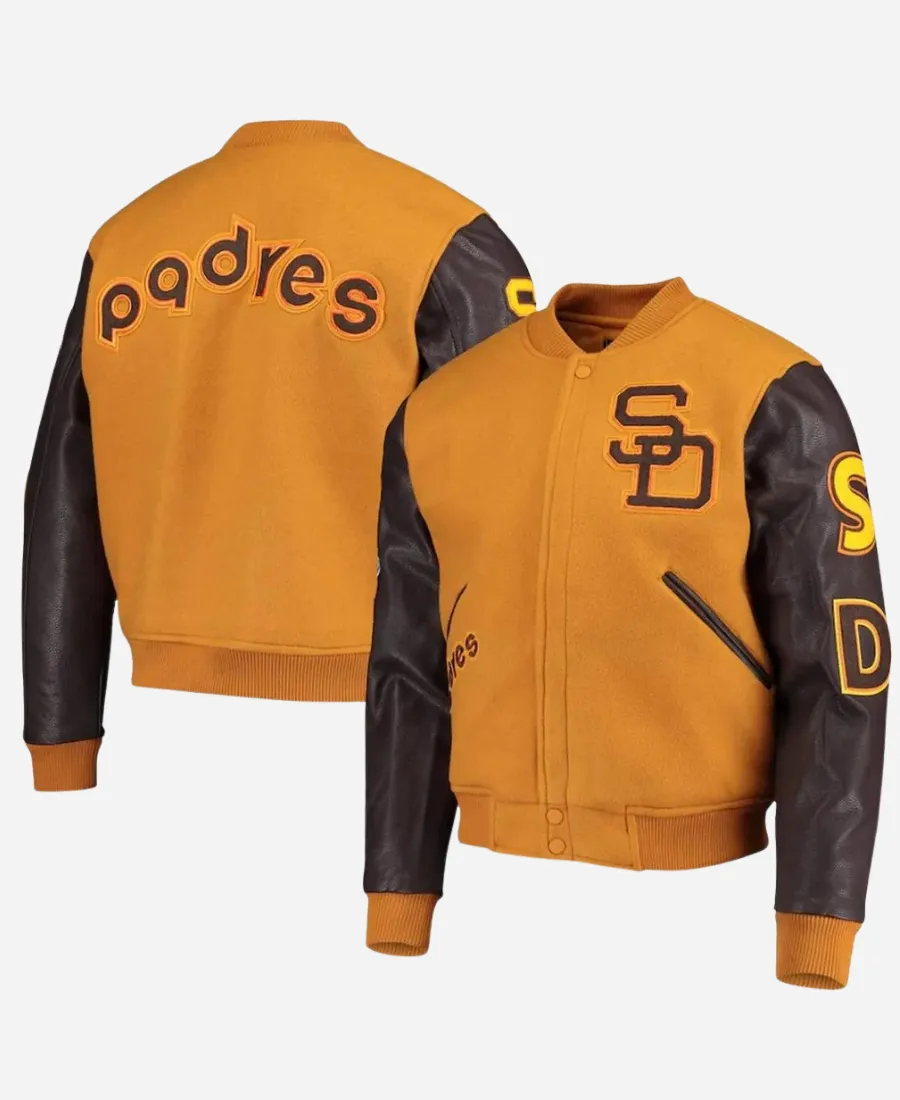 Pro Standard San Diego Padres Logo Brown Full-Zip Varsity Jacket