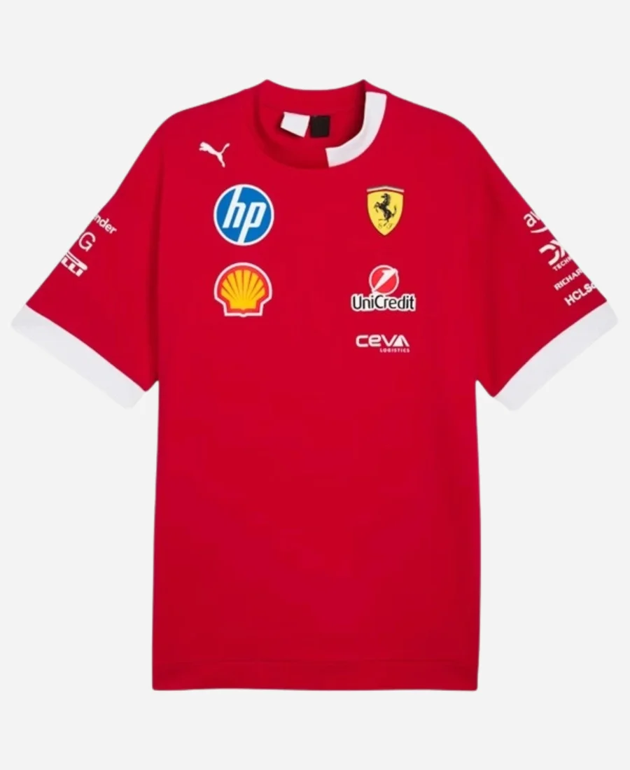 Charles Leclerc and Lewis Hamilton Scuderia Ferrari Drivers Men’s Motorsport Red Tee