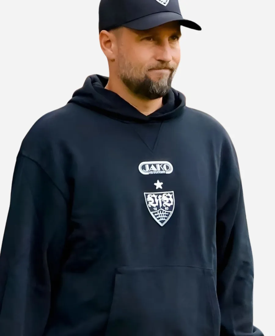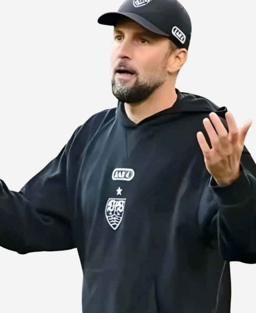 Want to add something trendy and sporty to bring coach-level style to your wardrobe? Want to wear a hoodie that delivers the calm confidence of Coach Sebastian Hoeneß? Slide into the famous Sebastian Hoeneß VfB Stuttgart Bundesliga Hoodie. A perfect black creation for a true fan of Sebastian Hoeneß and the Bundesliga team, the VfB Stuttgart. Moreover, this elegant black pullover hoodie is built for everyday wear to layer like a pro. It comes from the closet of Sebastian Hoeneß, the German football coach and the head coach for Bundesliga club VfB Stuttgart. On the other hand, this hoodie reflects the focus and finesse of the Bundesliga coaching elite. Wearing it will make you showcase your affection for the coach and the team with pride and comfort. So, add it now to your collection to stand out just like Sebastian Hoeneß.