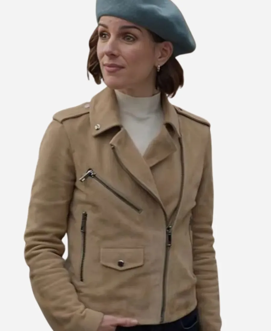 Shenae Grimes-Beech Movie Love Of The Irish 2025 Beige Suede Leather Jacket