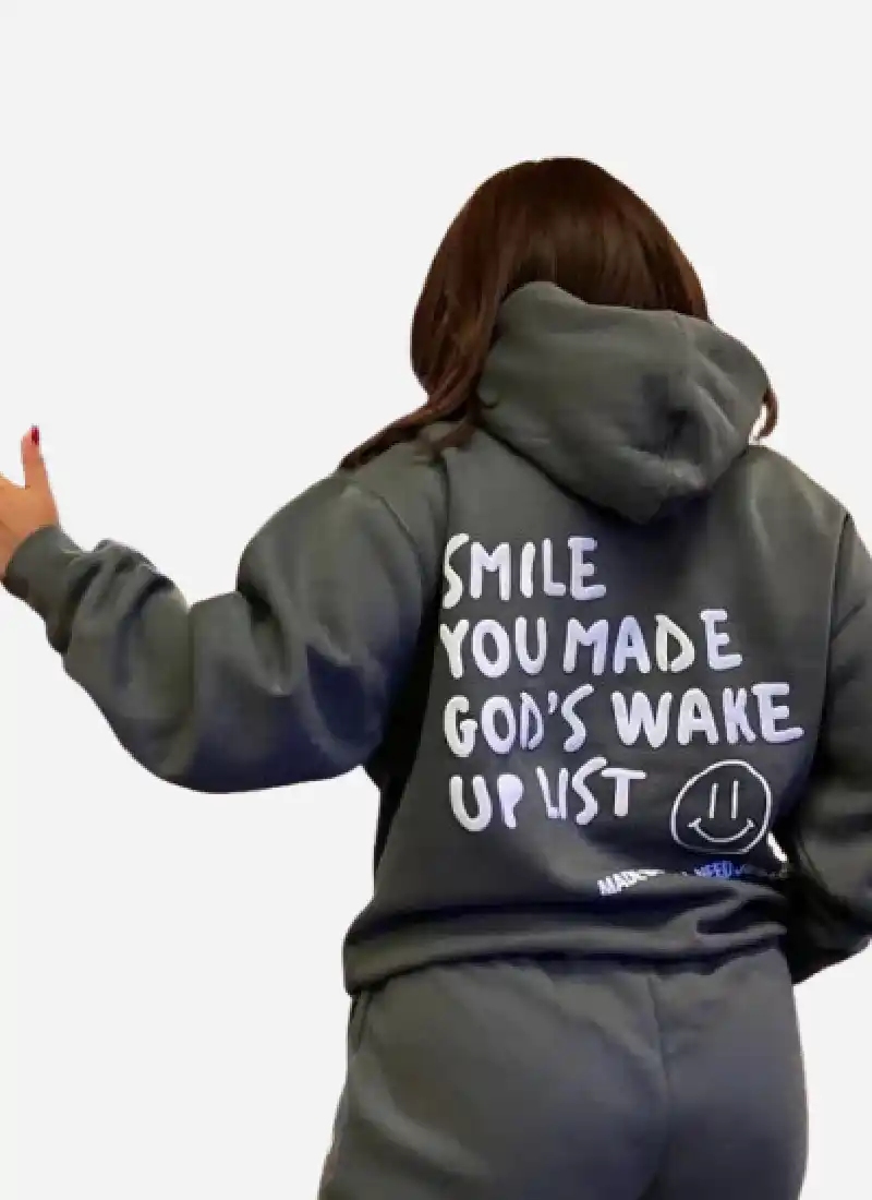 Unisex Pullover Smile You Made Gods Wake Up List Black & Grey Hoodie