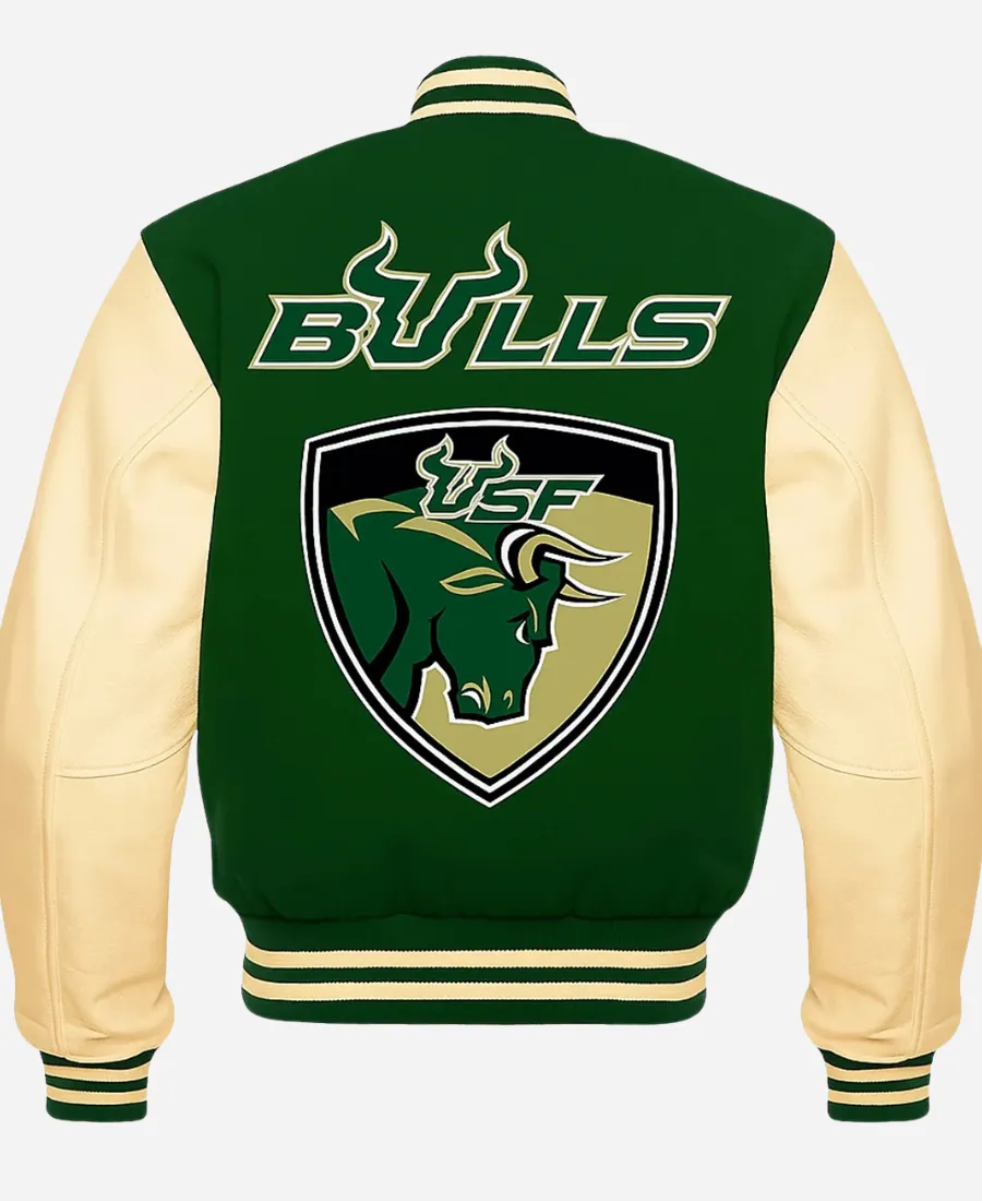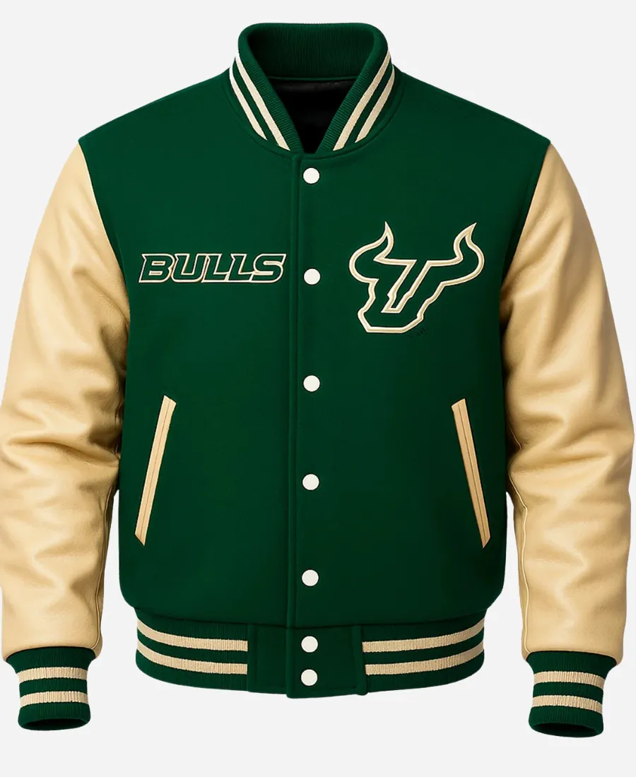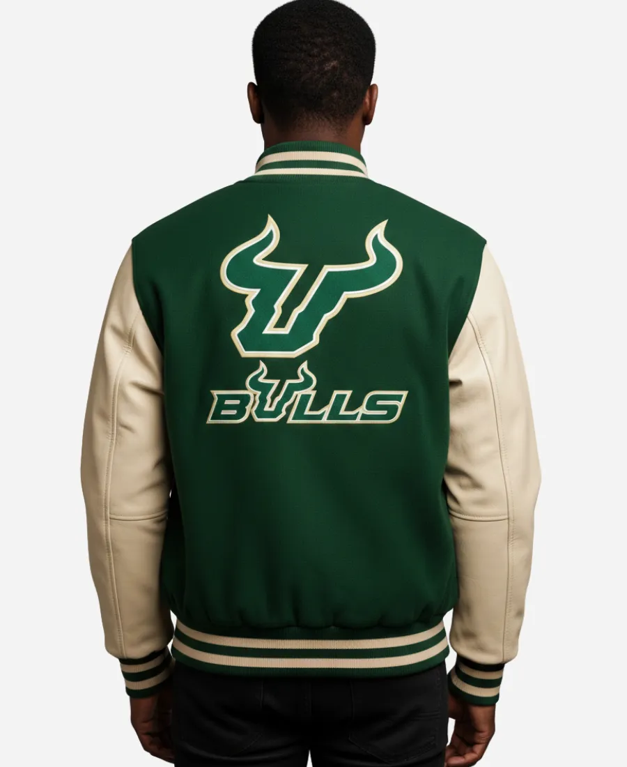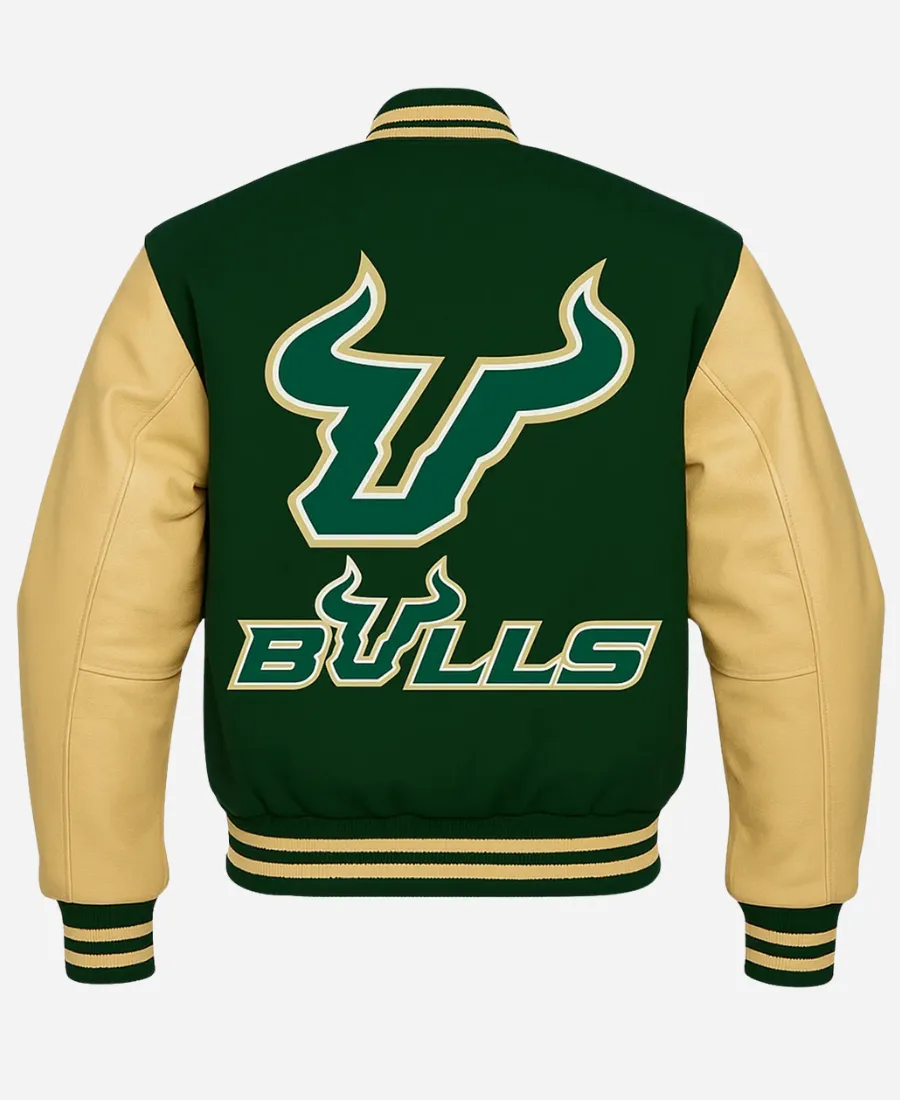 NCAA South Florida Chicago Bulls Green And Beige Letterman Varsity Jacket