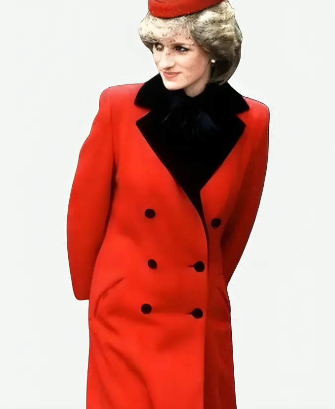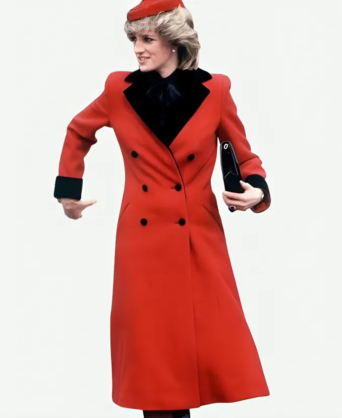 Kristen Stewart Spencer 2021 Diana Princess Double Breasted Red Long Trench Coat