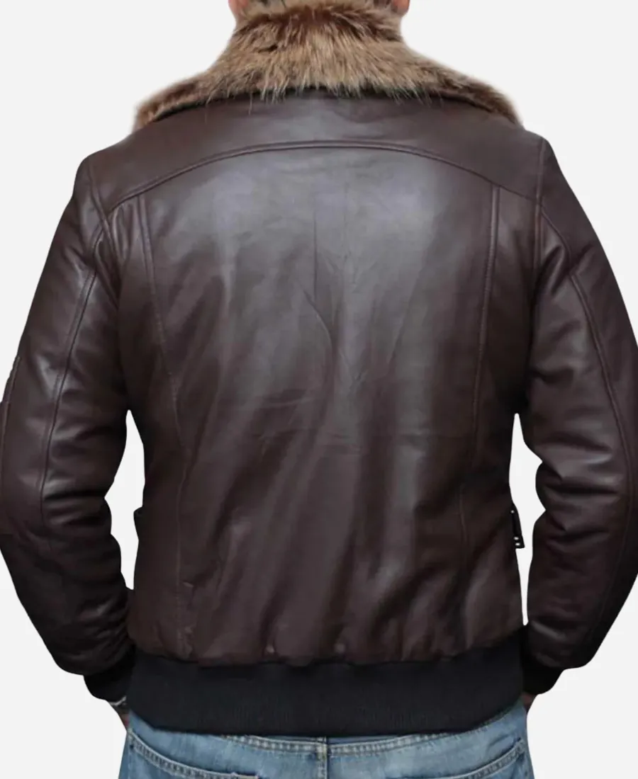 Men’s Brown Bomber Leather Jacket with Rib Collar