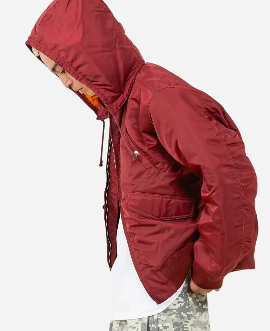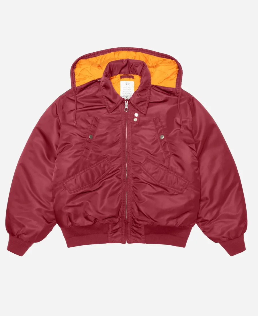 Stussy Snow Flight Hooded Bomber Jacket- Black, Burgundy & Camo Black