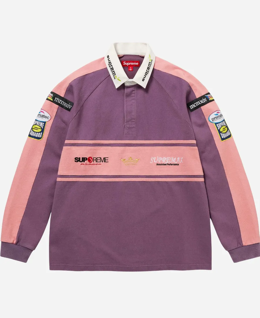 Unisex Supreme Chest Stripe Rugby Jacket – Purple, White & Black
