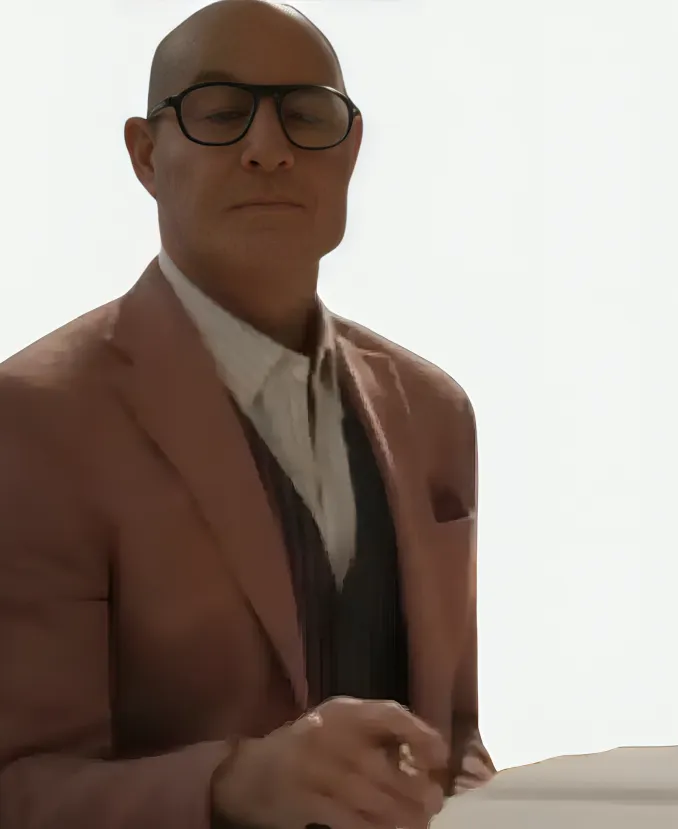 Stanley Tucci The Devil Wears Prada 2 Movie 2026 Nigel Light Brown Blazer