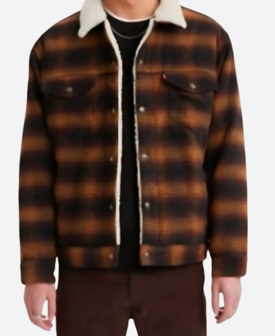 Josh McKenzie TV Series The Hunting Party 2025 Shane Florence Check Sherpa Jacket