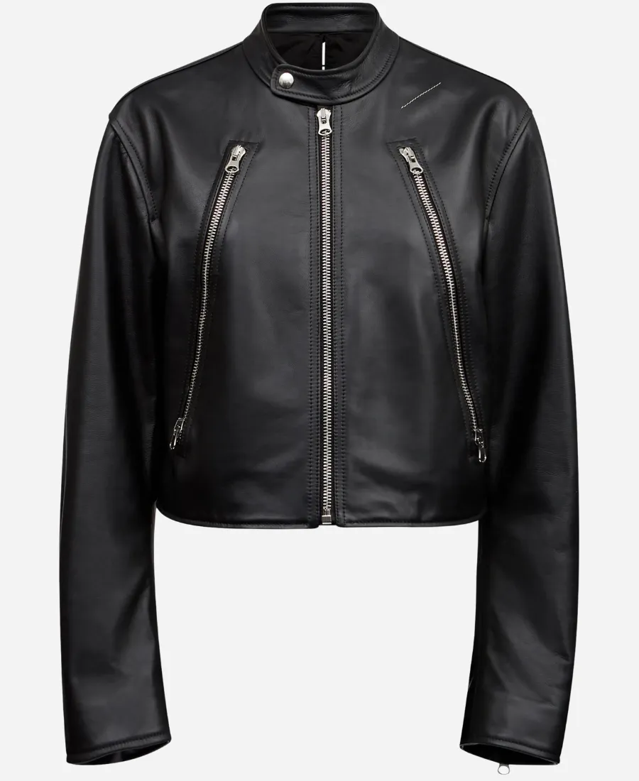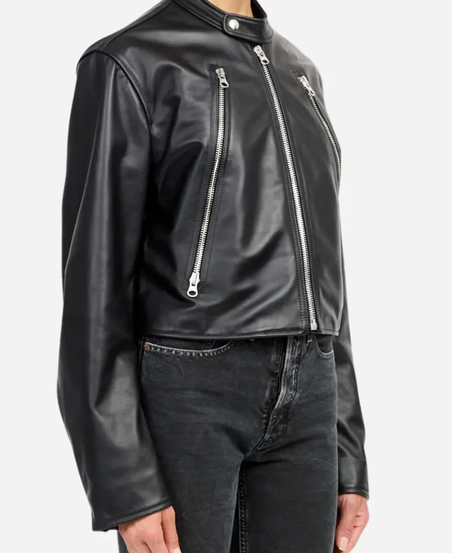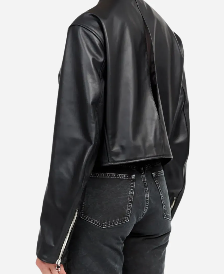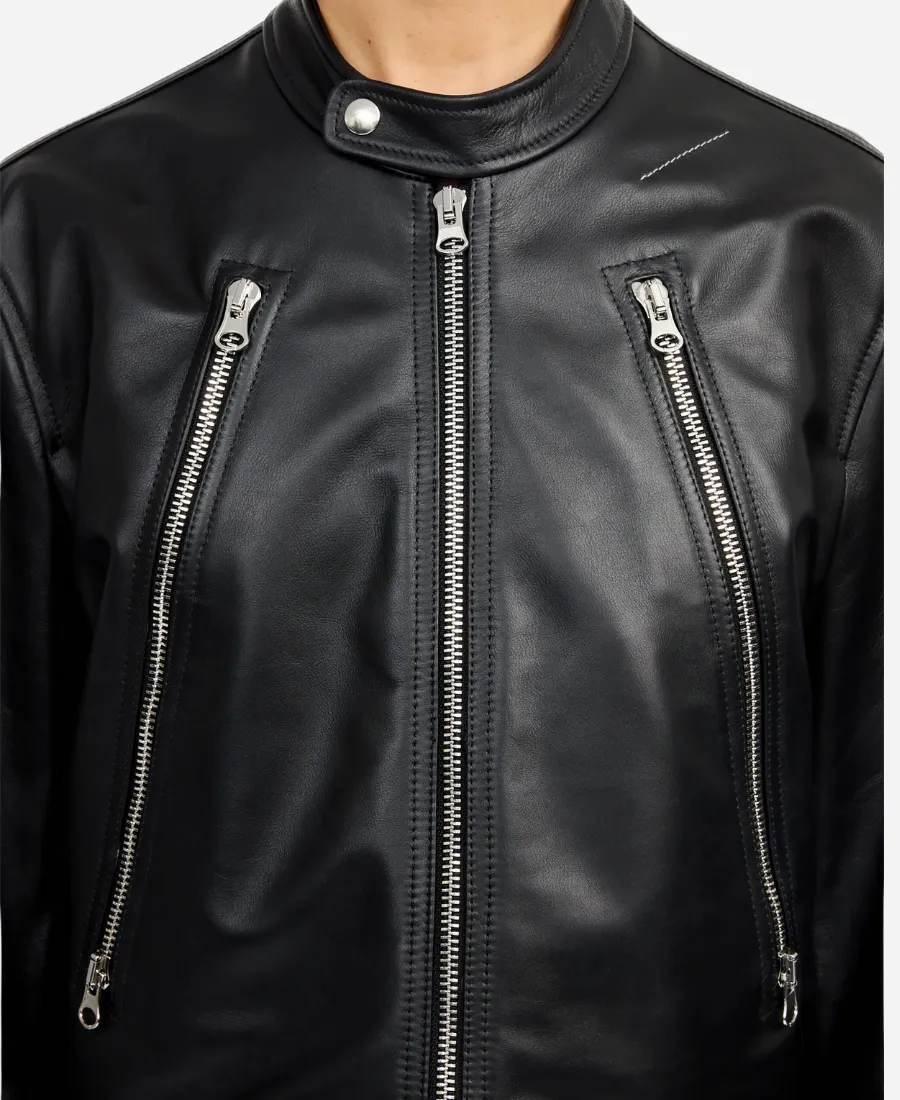 Michael Bublé The Voice Season 28 Black Cropped Racer Leather Jacket