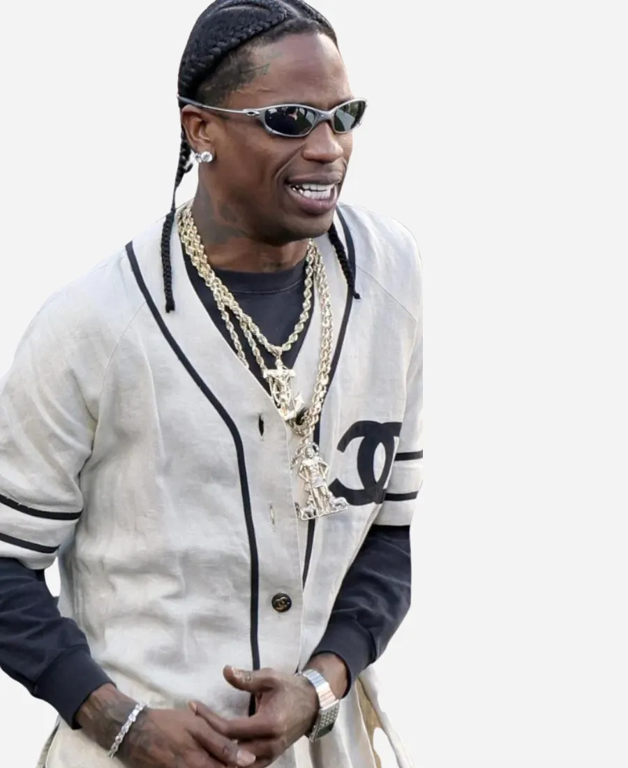 When vintage style meets modern-day elegance, the magic happens. This fascinating Travis Scott Super Bowl LX Chanel Jersey is the best example. For you all, especially for the fan who loves to wear trends, this immaculate white jersey is a nice pick. Moreover, it is now available in our new collection as an imitation in different sizes. The professionals of the Jacket Era craft this flawless white vintage jersey with high-quality stitching from premium cotton fabric. To make this jersey easy to wear, it features a stylish and durable front button closure. However, the half-length sleeves make it look complete, while the V-neck collar adds a sleek touch to its overall grace. To enhance its aesthetics, this vintage baseball jersey features piping details and the Chanel crest on the chest. Thus, make it yours and wear this jersey stylishly to be the showstopper without trying hard.